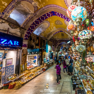 ซึ่งตลาดแห่งนี้นั้น มีความงามและน่าหลงใหล ของสถานที่ และประวัติศาสตร์ ทางสถาปัตยกรรมในอดีต และยังคงมีอยู่ในปัจจุบัน ได้แก่ “Cevahir Bedesten” เป็นโดมสูงที่โถงกลางของตลาด ที่มีคุณค่าและเก่าแก่มากที่สุด นอกจากนี้ภายในตลาดยังประกอบไปด้วย มัสยิด 2 แห่ง, ลานน้ำพุ 4 แห่ง, ฮามัม 2 แห่ง (Hamam, Turkish Bath), ร้านกาแฟ และร้านอาหารอีกหลายแห่ง