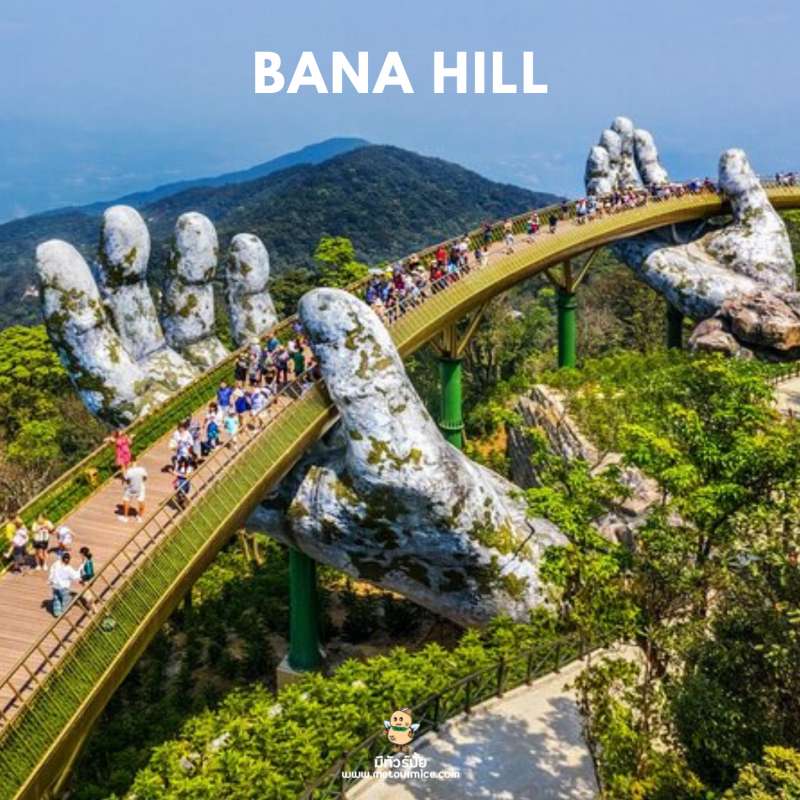 Ba Na Hill ครั้งหนึ่งเคยเป็นที่พักของนักล่าอาณานิคมชาวฝรั่งเศส แต่ขณะนี้ได้เปลี่ยนมาเป็นโรงแรม และรีสอร์ท คอมเพล็กซ์ เดินทางมาที่นี่ได้โดยขึ้นกระเช้าไฟฟ้าที่ยาวที่สุด และสูงที่สุดในโลก สามารถมองเห็นผืนป่า น้ำตกและลำธารต่างๆ ที่สำคัญยังมีที่เที่ยวใหม่ล่าสุด นั่นคือสะพาน Golden Bridge ที่มีอุ้งมือยักษ์โอบอุ้มสะพานไม้ที่โค้งตามแนวเขาเอาไว้
