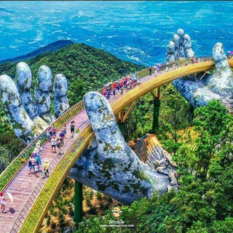 จุดแรกที่มาถึงก็คือ จุดถ่ายรูปยอดฮิตของบานาฮิลล์ ก็คือ สะพานมือยักษ์ Golden Bridge นั่นเอง ตรงนี้คนเยอะมากๆ ค่ะ ต้องหามุมดีๆ ถ่ายรูปจะได้ไม่ติดคนอื่นเยอะ สะพานสูงเหนือเมฆกันเลยทีเดียว ถ่ายรูปตรงนี้คือสวยอลังการมากๆ ต้องห้ามพลาดนะคะ