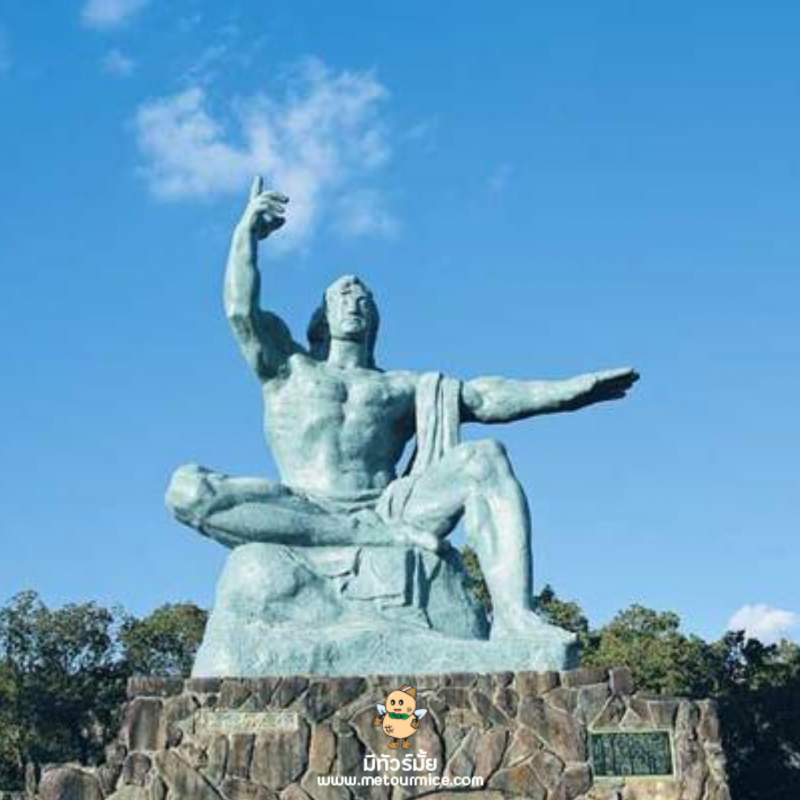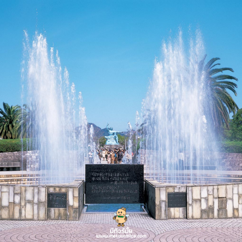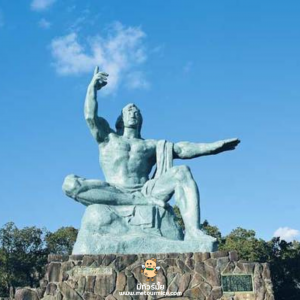 รำลึกถึงความโหดร้ายของสงคราม ณ สวนสันติภาพนางาซากิ สวนที่สร้างขึ้นหลังสงครามโลกครั้งที่สองเพื่อเป็นอนุสรณ์ให้ทุกคนรำลึกถึงความโหดร้ายของสงคราม สวนแห่งนี้นอกจากจะเป็นสถานที่ที่ผู้คนมาแสดงความรำลึกและสวดมนต์ขอพรแล้ว ยังเป็นที่เดินเล่นพักผ่อนเหมือนกับสวนสาธารณะทั่วไปอีกด้วย รูปปั้นใหญ่ในสวนที่ทำท่าแปลก ๆ นี้ก็มีความหมายซ่อนอยู่ มือขวาที่ชี้ขึ้นฟ้าหมายถึงระเบิดปรมาณู ส่วนมือซ้ายสื่อถึงสันติภาพนั่นเอง