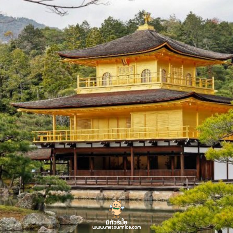 วัดคินคะคุจิ(Kinkakuji) ที่คนไทยทั่วไปรู้กันในชื่อว่าวัดทองนั่นเองค่ะ สาเหตุที่คนส่วนมากเรียกวัดนี้ว่าวัดทองนั่นก็เพราะว่าอาคารหลักของวัดนี้มีสีทองเหลืองอร่ามตั้งโดเด่นเป็นสง่าอยู่ท่ามกลางน้ำ เวลามองภาพสะท้อนก็กลายเป็นภาพที่งดงามไม่แพ้กัน เรียกได้ว่าดังขนาดกลายเป็นอีกหนึ่งสัญลักษณ์หนึ่งของสถานที่ท่องเที่ยวในเมืองเกียวโตเลยล่ะค่ะ จริงๆแล้วมีอีกชื่อนึงที่เป็นที่รู้จักของคนท้องถิ่นนั่นก็คือ “วัดโระคุงอนจิ(Rokuon-ji Temple)” ที่แปลว่าวัดสวนกวาง และด้วยสถาปัตยกรรมที่งดงามล้ำค่านี่เองจึงทำให้ได้รับการขึ้นทะเบียนจากยูเนสโกให้เป็นมรกดโลกในปี ค.ศ. 1994
