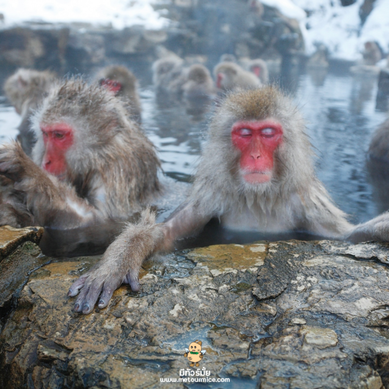 สวนสาธารณะแห่งนี้ด้านในเค้าจะมีสระว่ายน้ำที่สร้างขึ้นมาสำหรับเจ้าลิงทั้งหลายโดยเฉพาะ แบบว่าเดินเข้ามาแค่ 5 นาทีก็จะเห็นเจ้าลิงตัวน้อย ตัวใหญ่มาให้เห็นกันตลอดเส้นทางที่ไปยังสระน้ำเป็นออร์เดิรฟ์ ก่อนจะไปเจอของจริงอย่างเจ้าลิงนอนแช่น้ำแบบสบายใจโดยพวกมันจะจับกลุ่มกันเป็นกลุ่มใหญ่ๆ มีความคุ้นเคยกับมนุษย์ แต่อย่างไรก็ตามห้ามเข้าไปจับหรือให้อาหารโดยเด็ดขาด แล้วถ้าเกิดอยากจะได้ข้อมูลต่างๆเพิ่มเติมก็ทำได้ง่ายๆค่ะ เพราะบริเวณลานจอดรถเป็นที่ตั้งของศูนย์ข้อมูลเล็กๆ ซึ่งข้อมูลส่วนใหญ่เป็นภาษาญี่ปุ่นมากกว่าภาษาอังกฤษนะคะ แต่ก็ยังมีส่วนที่เป็นภาษาอังกฤษอธิบายเล็กน้อย และสามารถดูผ่านกล้องที่ตั้งอยู่ข้างๆสระน้ำเพื่อสังเกตพฤติกรรมของลิงได้ด้วย