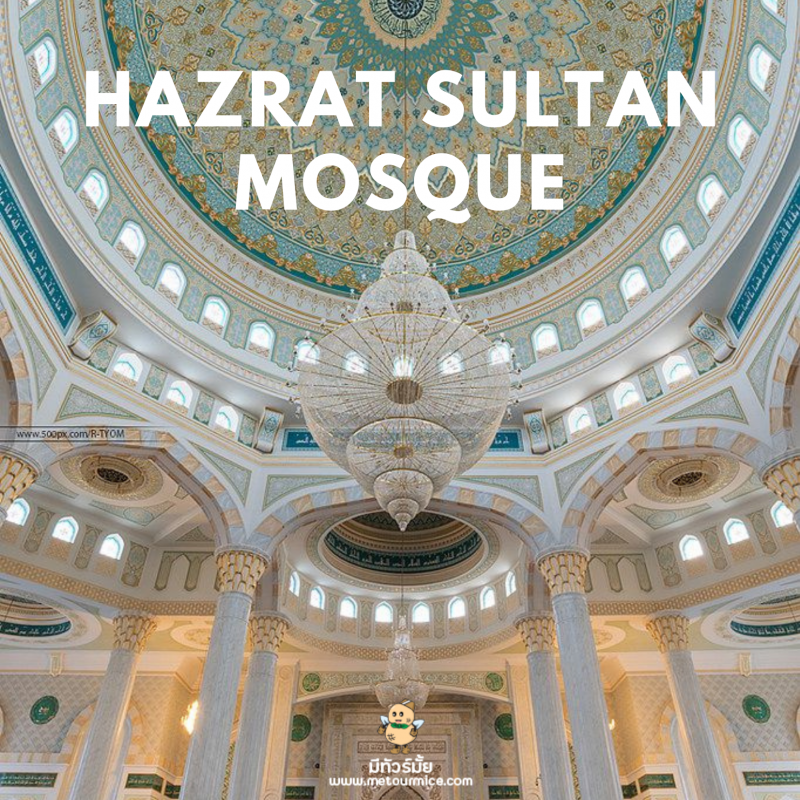 มัสยิดสุลตานฮัซเรต (Hazrat Sultan Mosque) มัสยิดสุลตานฮัซเรตเป็นมัสยิดที่ใหญ่ที่สุดในคาซัคสถานและใหญ่เป็นอันดับ 2 ของเอเชียกลาง ด้วยความสูงของยอดโดมถึง 51 เมตร เส้นผ่าศูนย์กลาง 28.1 เมตร อีกทั้งมีโดมขนาดเล็ก 8 โดมล้อมรอบ ตกแต่งด้วยหินอ่อนและประดับลวดลายตามจุดต่างๆ แบบฉบับคาซัคสถาน ภายในมีห้องประกอบพิธีทางศาสนาหลายห้องถือเป็นศูนย์กลางทางศาสนาอิสลามที่สำคัญอีกแห่งหนึ่งของโลกเลยก็ว่าได้