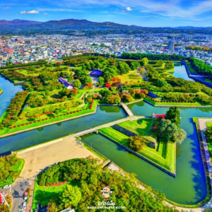 พาเที่ยวชมวิวของป้อมปราการ โงเรียวคาคุ (Fort Goryokaku Tower) เป็นป้อมปราการที่มีชื่อเสียงแห่งหนึ่งของ Hakodate มีชื่อเรียกอีกชื่อว่า ป้อมดาวห้าแฉก ป้อมนี้ สร้างเป็นห้าแฉก เพราะต้องการเพิ่มพื้นที่การวางปืนใหญ่ในสมัยก่อนเพื่อป้องกันการรุรานการล่าอาณานิคมจากจักรวรรดิตะวันตกซึ่งไม่กี่ปีต่อมาก็กลายเป็นฐานสำคัญในสงครามกลางเมืองระหว่างผุ้สำเร็จราชการและกองกำลังรัฐบาลเมจิที่จัดตั้งขึ้นมาใหม่