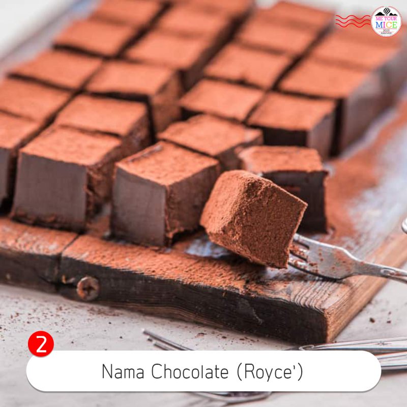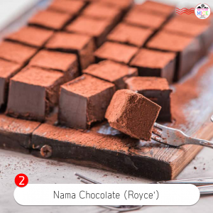 อีกหนึ่งผลิตภัณฑ์ยอดนิยมจาก Royce’ กับขนมจากช็อคโกแลตแท้สูตรเข้มข้น ด้วยส่วนผสมของช็อคโกแลตและครีมสดซึ่งเป็นครีมสดที่ผลิตในฮอกไกโด ความโดดเด่นของช็อคโกแลต Nama คือรสชาติเข้มข้นละลายในปากแต่งกลิ่นด้วยเหล้าฝรั่งให้รสชาติที่นุ่มนวลและโรยด้วยผงโกโก้ด้านบนเพื่อเพิ่มรสชาติ