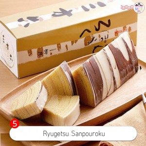 Sanpouroku หรือขนมบามคูเฮน (Baumkuchen) เค้กสไตล์เยอรมันที่มีหลายชั้นเหมือนวงปีในเนื้อไม้ ซึ่ง Sanpouroku นับเป็นขนมขึ้นชื่อของฮอคไกโด Ryugetsu Sanpouroku มีจำหน่ายด้วยกัน 3 รสคือ ธรรมดา, เมเปิ้ลและช็อคโกแลต ความพิเศษของ Sanpouroku ของ Ryugetsu คือผิวเค้กด้านนอกที่เคลือบช็อคโกแลตมีลักษณะกรอบและเนื้อเค้กด้านในฟูนิ่มและมีรสหวานฉ่ำลิ้น
