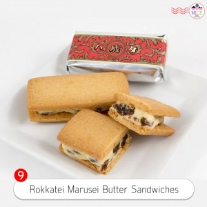แซนวิชคุกกี้เนยกรุบกรอบสอดไส้ด้วยไวท์ช็อคโกแลต, ลูกเกดและครีมจาก Rokkatei ทำมาจากวัตถุดิบของฮอกไกโด 100% เนื้อสัมผัสของคุกกี้กรอบมีรสหวานมันกลมกล่อมของเนยคุณภาพสูงและความหวานละมุนละไมของตัวไส้ข้างในตัดกันกับความเปรี้ยวนิดๆ ของลูกเกดได้อย่างไม่น่าเชื่อแม้จะดูเหมือนขนมธรรมดาๆ