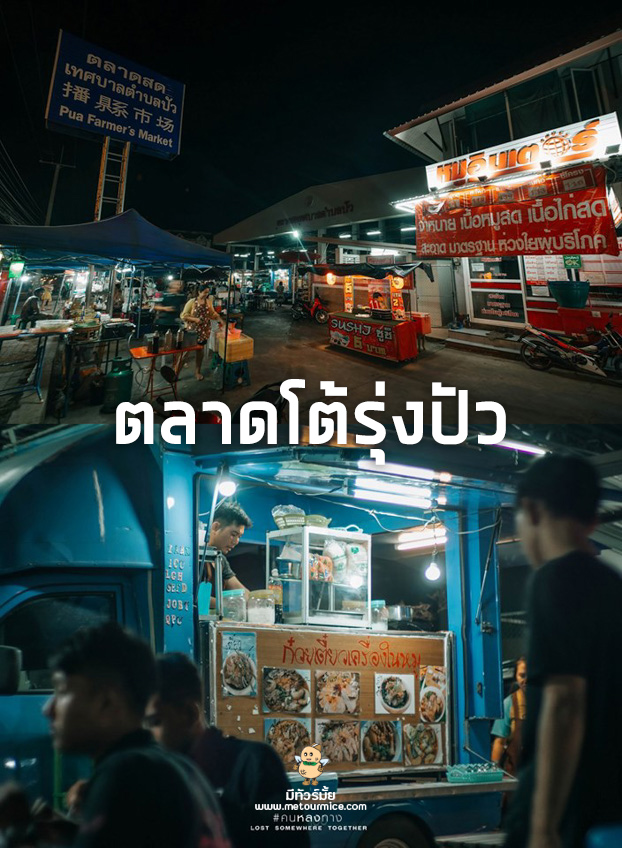 ในยามค่ำคืนนี่ถ้าจะบอกว่าเวลาที่ชวนหิวก็คงไม่ผิด 55555+ ไม่รู้เป็นอะไร ทำไมชอบหิวตอนกลางคืนทู้กกกที ก็ขอออกไปหาของอร่อยๆ กินกันที่ตลาดโต้รุ่งในตัวเมืองปัวกันหน่อยครับ มีร้านค้าอยู่หลากหลาย อิ่มอร่อยราคาไม่แพง