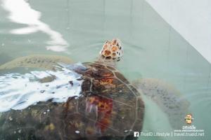 ออกจากพิพิธภัณฑ์ไปดูเต่าทะเลตัวจริงเสียงจริงกันบ้าง ที่นี่มีทั้งเต่าทะเลอายุมาก เต่าทะเลโตเต็มวัย เต่าทะเลที่บาดเจ็บ และลูกเต่าทั้งหลายที่ทางศูนย์ฯ ดูแลอยู่ เป็นการอนุบาลเต่าทะเลจนกว่าจะหายจากอาการบาดเจ็บ หรือโตพร้อมจะออกไปแหวกว่ายสู่โลกภายนอก ทางศูนย์ฯ ก็จะนำเต่าทะเลออกไปปล่อยที่ทะเลค่ะ
