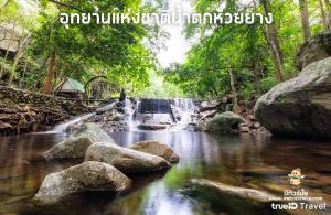 อุทยานแห่งชาติน้ำตกห้วยยาง เป็นผืนป่าที่มีพันธุ์ไม้และสัตว์ป่าหลายชนิด รวมถึงเป็นที่ตั้งของ น้ำตกห้วยยาง น้ำตกขนาดใหญ่ 7 ชั้น ที่มีทัศนียภาพที่สวยงามต่างกัน แต่ชั้นที่สวยที่สุดของที่นี่คือ ชั้น 5 เพราะจะเห็นวิวของน้ำตกสูงถึง 15 เมตรไหลลงมาจากหน้าผาอย่างสวยงาม แถมยังมีแอ่งน้ำให้เล่นด้วยเช่นกัน