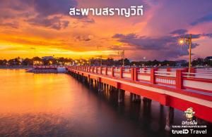 สะพานสราญวิถี เดิมมีชื่อว่า สะพานปลาประจวบ เพราะเคยมีการค้าขายปลากันที่นี่ แต่หลังจากที่ยกเลิกสะพานปลาไป ก็ได้ซ่อมแซมให้เป็นสะพานสีแดง มีเอกลักษณ์ที่โดดเด่น และเป็นจุดถ่ายรูป ชมวิวพระอาทิตย์ตกดินที่สวยที่สุดแห่งหนึ่งในเมืองประจวบเลย