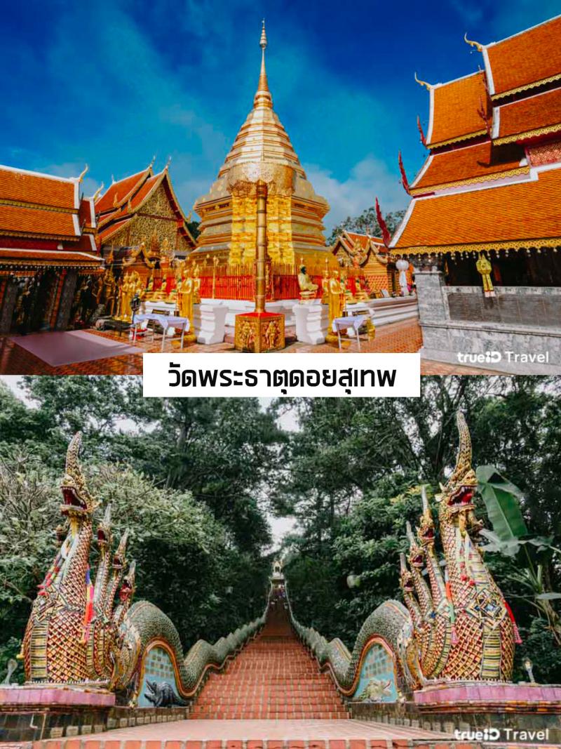วัดพระธาตุดอยสุเทพ ตั้งอยู่บนยอดดอยสุเทพ สร้างขึ้นเมื่อต้นพุทธศตวรรษที่ 19 เพื่อประดิษฐานพระบรมสารีริกธาตุที่ได้ชอัญเชิญมาจากเมืองศรีสัชนาลัย และเป็นปูชนียสถานคู่เมืองเชียงใหม่นับตั้งแต่โบราณกาลค่ะ ถ้าหากใครที่มาเยือนเมืองเชียงใหม่แล้วไม่ได้ขึ้นไปนมัสการถือเสมือนว่ายังมาไม่ถึงเชียงใหม่เลยทีเดียว