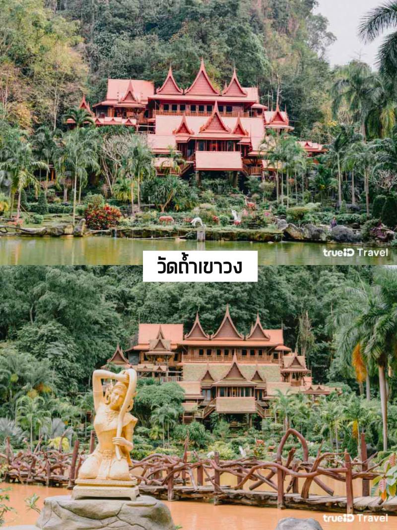 ดูเผินๆ ภายนอกจะเห็นเป็นเรือนไม้ขนาดใหญ่โอบล้อมด้วยเขาหินปูน เหมือนเป็นรีสอร์ทสวยงาม ท่ามกลางบรรยากาศกำลังเย็นสบายๆ แต่ที่จริงแล้ว ที่นี่คือ วัดถ้ำเขาวง ค่ะ ที่มีการออกแบบคล้ายกับศาลพระภูมิขนาดยักษ์ ตั้งอยู่ในตำบลบ้านไร่ จังหวัดอุทัยธานีนี่เอง เรียกได้ว่าเป็นหนึ่งใน Unseen in Thailand เลยทีเดียว