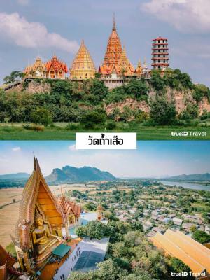 วัดถ้ำเสือ วัดสวยกลางทุ่งนาสีเขียว เป็นวัดที่มีชื่อเสียงอย่างมากในกาญจนบุรี รวมถึงเป็นวัดที่มีพระพุทธรูปองค์ใหญ่ที่สุดในจังหวัดกาญจนบุรีอีกด้วย พระเจดีย์ที่มีความสวยงามโดดเด่น และสามารถมองเห็นได้จากในระยะไกล เพราะตั้งอยู่บนเนินเขา จึงเป็นวัดสวยที่เห็นได้แต่ไกลเลยทีเดียว