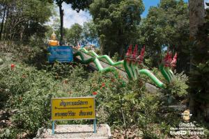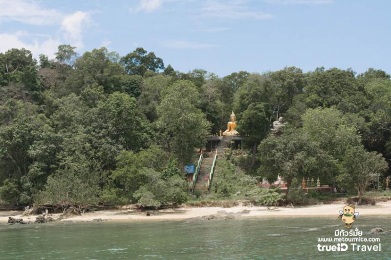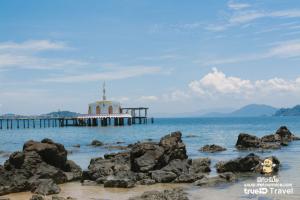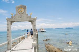 ก่อนที่เราจะไปโบสถ์ ด้านซ้ายมือจะมีบันไดให้ขึ้นไปที่วัดเกาะพยาม เราขึ้นไปสักการะ พระพุทธวิริยะ ชัยมงคล ที่ด้านในของวัดก่อน หลังจากสักการะพระพุทธรูปด้านบนของวัดแล้ว เราก็ลงมาเพื่อเดินตามสะพานที่ทอดตัวยาวสู่ทะเลไปโบสถ์กลางทะเล