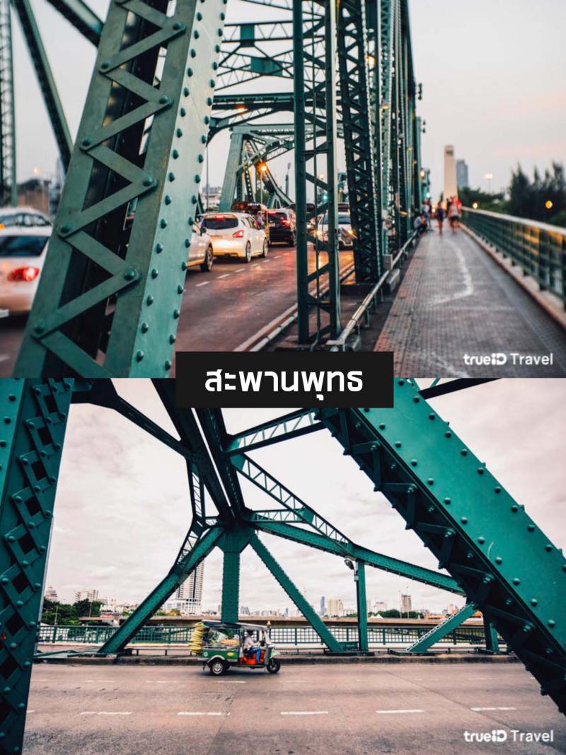 เปลี่ยนฟีลไปเดินเล่นบนสะพานเก่าสวยๆ อย่าง สะพานพุทธ หรือชื่อเต็มๆ คือ สะพานพระพุทธยอดฟ้า แถวปากคลองตลาดค่ะ ในปัจจุบันที่นี่จะเป็นที่ประดิษฐานปฐมบรมราชานุสรณ์ แถมยังมีลานสาธารณะให้คนมาใช้พักผ่อนหย่อนใจ แต่ที่เราจะแนะนำทุกคนจริงๆ ก็คือด้านบนสะพานค่ะ บอกเลยว่าถ่ายรูปสวยมาก! ภาพที่ได้จะฟีลแบบเรากำลังโพสต์ท่า โดยมีพื้นหลังเป็นโครงเหล็กสีเขียว ดีงามมากมาย