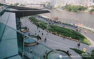 แล้วถ้าหากทุกคนเดินออกจากโซน Apple Store ก็จะพบกับโซน River Park เลยล่ะค่ะ โซนนี้ถือเป็นอีกหนึ่งโซนที่น่าสนใจ แถมยังเหมาะแก่การถ่ายรูปอีกด้วย เพราะทาง ไอคอนสยาม ตั้งใจเนรมิตพื้นที่ตรงโซนนี้ ให้กลาายเป็น Community Space หรือลานคนเมือง ริมฝั่งแม่น้ำเจ้าพระยาขนาดใหญ่กว่า 10,000 ตารางเมตร สัมผัสบรรยากาศริมแม่น้ำสายหลักของประเทศได้ทุกวัน บริเวณนี้จะมีทั้งต้นไม้มงคลของไทย ท่าเรือสาธารณะ น้ำพุเต้นระบำประกอบแสงสีเสียงบริเวณ River Park มีความยาวประมาณ 240 เมตร ซึ่งถือเป็นน้ำพุที่ยาวที่สุดในภูมิภาคเอเชียตะวันออกเฉียงใต้