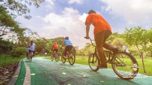 เมืองจราจรจำลอง อีกกิจกรรมของเด็กๆ ที่จะจำลองสิ่งก่อสร้างและสถานที่ท่องเที่ยวต่างๆ ในเมืองไทยมารวมกันไว้ ทั้ง สะพานพระราม 8 ภูเขาทอง อนุสาวรีย์ชัยสมรภูมิ เป็นต้น นอกจากนี้ยังที่ฝึกอบรมให้ความรู้เรื่องการขับขี่ยานยนต์และการจราจรแก่เด็กๆ และเยาวชนอีกด้วยค่ะ พ่อแม่ก็ปั่นจักรยาน หรืออ่านหนังสือใต้ต้นไม้กันไป ส่วนลูกๆ ก็ไปเล่นสนุกกันที่เมืองจำลอง ชิลสุดๆ ไปเลย