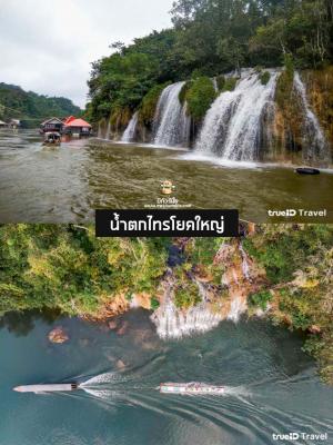 สำหรับ น้ำตกไทรโยคใหญ่ เป็นน้ำตกที่ไหลลงสู่แม่น้ำแควน้อยค่ะ ซึ่งจะแยกเป็น 2 แพร่ง ส่วนที่อยู่ทางตอนเหนือเรียกว่าน้ำตกไทรโยคใหญ่ ลักษณะเป็นน้ำตกชั้นเดียว สูงประมาณ 8 เมตร โดยเราสามารถไปชมความงดงามของน้ำตกได้จากจุดชมวิวสะพานแขวนไทรโยค หรือล่องเรือชมไปชมน้ำตกใกล้ๆ ได้