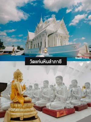 วัดแท่นหินลำภาชี เป็นที่เที่ยววัดสวยๆ ในกาญจนบุรี ที่มีประติมากรรมอันสวยงามมากๆ ค่ะ เพราะมี อุโบสถแก้ว ตั้งอยู่บนเรือหงส์แห่งเดียวในไทยเลยค่ะ อุโบสถแห่งนี้ เรียกว่า โบสถ์สำเภาแก้วร้อยล้าน และมี สมเด็จพระพุฒาจารย์ โต พรหมรังสี องค์ใหญ่ประดิษฐานอยู่หน้าอุโบสถให้ได้สักการะด้วย