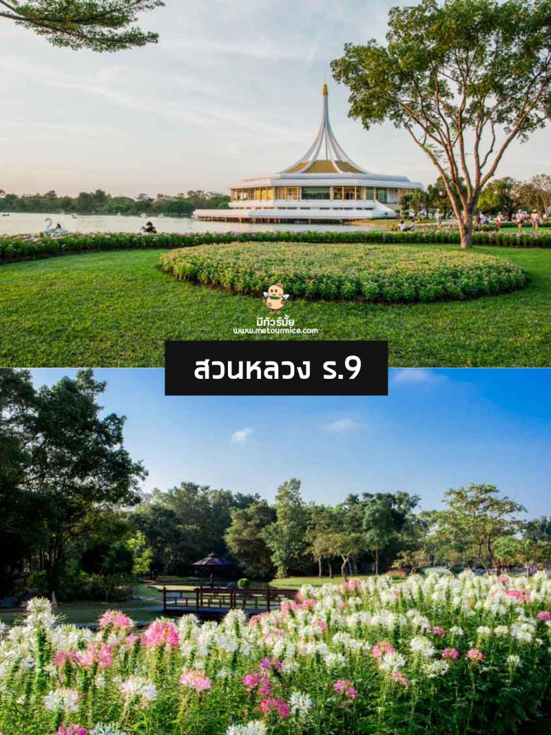 สวนหลวง ร.9 เป็นสวนสาธารณะและสวนพฤกษศาสตร์ที่ใหญ่ที่สุดในกรุงเทพฯ มีพื้นที่ประมาณ 500 ไร่ที่เดียวค่ะ ที่นี่มีกิจกรรมมากมายให้เราได้ผ่อนคลาย เช่น วิ่ง ปั่นจักรยานน้ำ และยังเหมาะสำหรับเดินเล่นเที่ยวชมธรรมชาติ ชมนก ชมไม้อีกด้วย