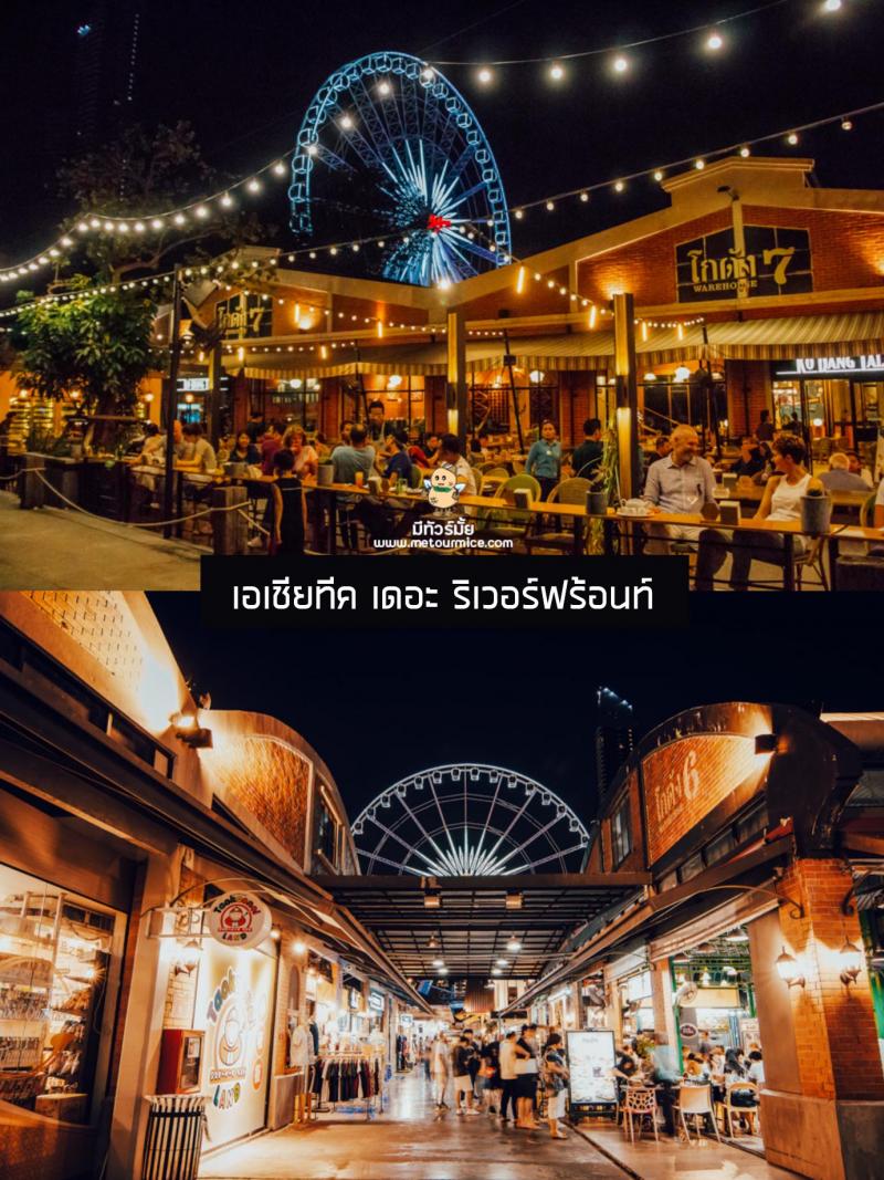 เอเชียทีค เดอะ ริเวอร์ฟร้อนท์ แหล่งท่องเที่ยว และช้อปปิ้งยามค่ำคืนไลฟ์สไตล์ริมแม่น้ำเจ้าพระยา นอกจากจะมีจุดถ่ายรูปสวยๆ แล้ว ที่นี่ยังเป็นแหล่งร้านกินดื่มมากมาย บรรยากาศดี ใครที่อยากหาร้านนั่งชิล กินของอร่อย รับลมริมน้ำ ที่นี่คือตอบโจทย์สุดๆ และจะโรแมนติกไปอีกถ้าพาแฟนไปเที่ยว นั่งชิงช้าสวรรค์ยักษ์ใหญ่ ที่ดูไปก็คล้ายๆ กับ London Eye ของลอนดอนกันเลยทีเดียว