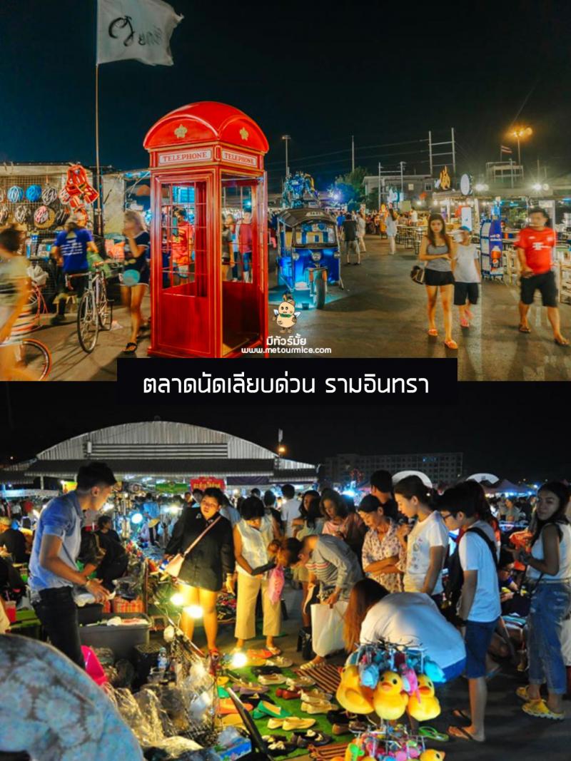 ตลาดนัดเลียบด่วน รามอินทรา ที่เที่ยวกรุงเทพฯ กลางคืน อีกแห่งหนึ่งสำหรับคนนอนดึก ภายในตลาดนัดเต็มไปด้วยร้านรวงมากมาย ทั้ง ร้านเสื้อผ้าแฟชั่น ร้านขายสินค้า ของเล่นต่างๆ รวมไปถึงทีเด็ดของที่นี่ก็คือ ร้านอาหาร สตรีทฟู้ดแน่นๆ ที่มีให้อร่อยกันครบรสทั้ง อาหารไทย อาหารทะเล ซีฟู้ดแซ่บๆ ร้านกินดื่ม นั่งชิล แฮงค์เอาท์ เปิดยาวๆ ไปยันตี 2 เลยทีเดียวจ้า