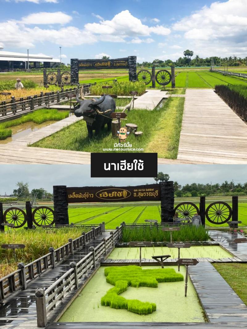 นาเฮียใช้ ศูนย์เรียนรู้วิถีชีวิตและจิตวิญญาณชาวนาไทย เป็นสถานที่ท่องเที่ยวเชิงเกษตรที่สำคัญแห่งหนึ่งใน จังหวัดสุพรรณบุรี เพราะเป็นจุดศูนย์รวมความรู้เกี่ยวกับการเกษตรและวัฒนธรรมต่างๆ ที่เกี่ยวข้องกับชาวนาไทยค่ะ ชีวิตวัยเด็กของ เฮียใช้ (เจ้าของนาเฮียใช้) ต้องเติบโตมากับการรับซื้อข้าวเปลือก และต่อสู้ดิ้นรนมาตลอด จนกระทั่งปี พ.ศ. 2540 ก็ได้ตัดสินใจเปลี่ยนมาเป็นรวบรวมเมล็ดพันธุ์ข้าวเพื่อนำมาเพาะปลูก และผลิตเมล็ดพันธุ์ข้าวที่ได้คุณภาพ หลังจากที่ธุรกิจเติบโตก็ได้พัฒนาให้แปลงนาแห่งนี้เป็นที่เที่ยวเชิงเกษตร ให้นักท่องเที่ยวได้เข้ามาสัมผัสเรียนรู้วิถีชีวิตและจิตวิญญาณของชาวนาไทย และเพลิดเพลินไปกับบรรยากาศสวยๆ ของท้องนา