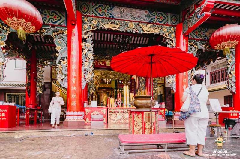 นอกจากที่นี่จะเป็นโรงพยาบาลแล้ว ที่ด้านหน้าของโรงพยาบาลยังมี ศาลเจ้าแม่กวนอิม เป็นสถาปัตยกรรมผสมผสานจีนแต้จิ๋ว ซึ่งเป็นศูนย์รวมจิตใจของชาวบ้านในย่านเยาวราช ภายในศาลเจ้าประดิษฐาน เจ้าแม่กวนอิม พระโพธิสัตว์อวโลกิเตศวร ปางประทานพร เป็นองค์ประธานในศาลเจ้า ซึ่งอันเชิญมาจากประเทศจีนตั้งแต่ปี พ.ศ.2501 ค่ะ และเปิดให้ประชาชนทั่วไปได้เข้าไปสักการะบูชา
