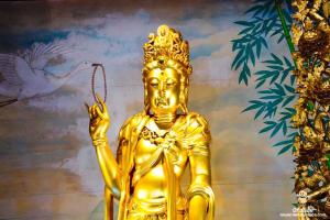 องค์เจ้าแม่กวนอิมนั้น ทำด้วยไม้จันทร์เนื้อหอมแกะสลัก รูปแบบศิลปะราชวังถัง แต่สันนิษฐานว่าสร้างขึ้น ในสมัยของราชวงศ์ซ่ง เมื่อประมาณ 800-900 ปีมาแล้ว องค์เจ้าแม่กวนอิมนั้นมีสีทองอร่าม โดดเด่น และสวยงามมากๆ อีกด้วย
