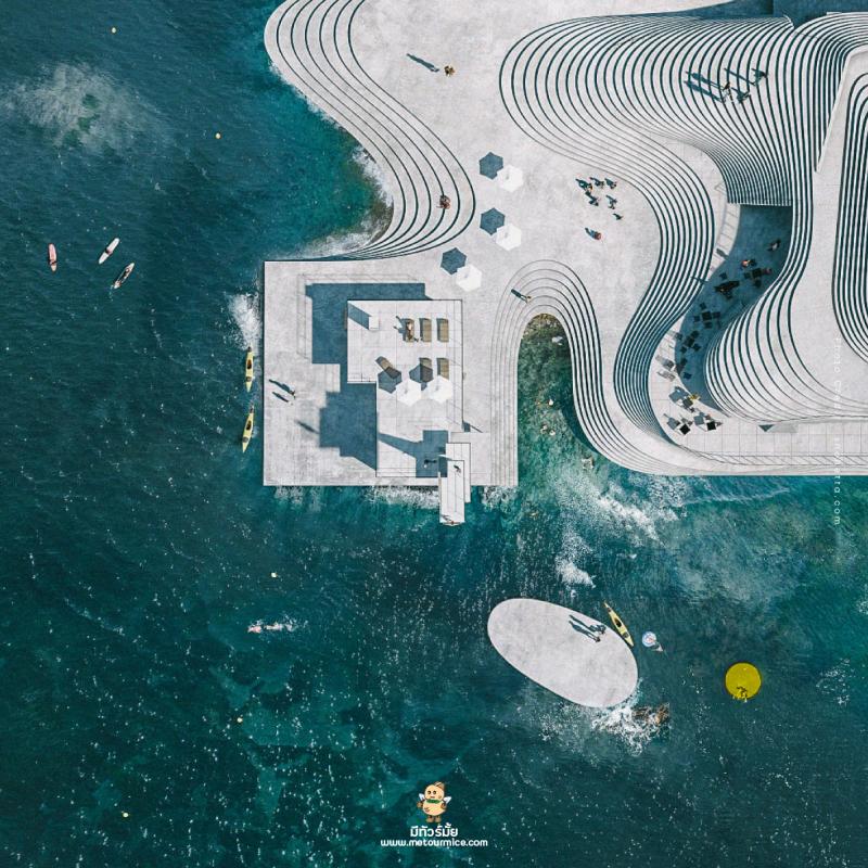 อีกทั้งพื้นที่สาธารณะแห่งนี้ไม่ได้อุดมไปด้วยกิจกรรมทางน้ำ แต่ปรับให้เป็นลานอเนกประสงค์ที่รวมสิ่งอำนวยความสะดวกเอาไว้ ไม่ว่าจะเป็นอัฒจันทร์สำหรับนั่งพักหรือชมการแสดง ร้านอาหาร และคงซิกเนเจอร์ของคนุบเบินอย่าง แพลตฟอร์มสำหรับกระโดดน้ำเอาไว้เหมือนเดิม