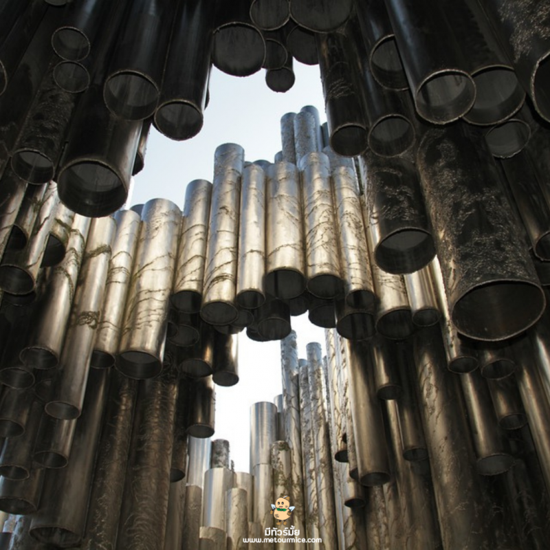 ซึ่งเป็นปลุกใจชาวฟินเเลนด์ให้ลุกขึ้นมาต่อสู้เรียกร้องเอกราชจากรัสเซียในขณะนั้นและสามารถทำได้สำเร็จในที่สุด ความน่าสนใจและความโดดเด่นของ Sibelius Monument อยู่ที่การสร้างโดยนำเอาเเท่งเหล็กจำนวนกว่า 600 เเท่งมาเชื่อมเข้าด้วยกันจนมีลักษณะเป็นออร์เเกนซึ่งที่มีความสูงหลากหลายระดับ โดยแท่งที่สูงที่สุดนั้นมีความสูงมากกว่า 8 เมตรเลยทีเดียว และนอกจากกลุ่มแท่งออร์แกนแล้ว บริเวณฐานด้านล่างยังมีประติมากรรมเป็นรูปใบหน้าของ Jean Sibelius ตั้งอยู่ด้วย