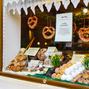 หลังจากเดินตาม Night Watchman Guided Tours ไปจนจบลงที่บริเวณจตุรัส Marktplaz แล้ว เราเดินย้อนลงไปทางทิศใต้ตามถนน Untere Schmiedgasse ผ่านร้านขายของที่ระลึกและร้านขนมสวยๆ สักพักก็เจอกับจุดถ่ายรูปยอดนิยมประจำเมือง Plonlein (แปลว่า Little Square) และ Siebers Tower