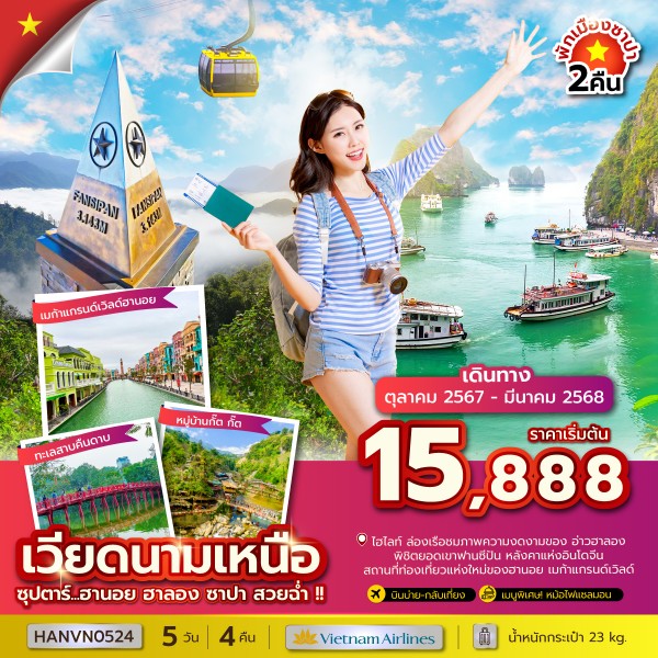 วันที่ 1 ท่าอากาศยานสุวรรณภูมิ - ท่าอากาศยานนานาชาติโหน่ยบ่าย (ฮานอย) - เมืองฮาลอง